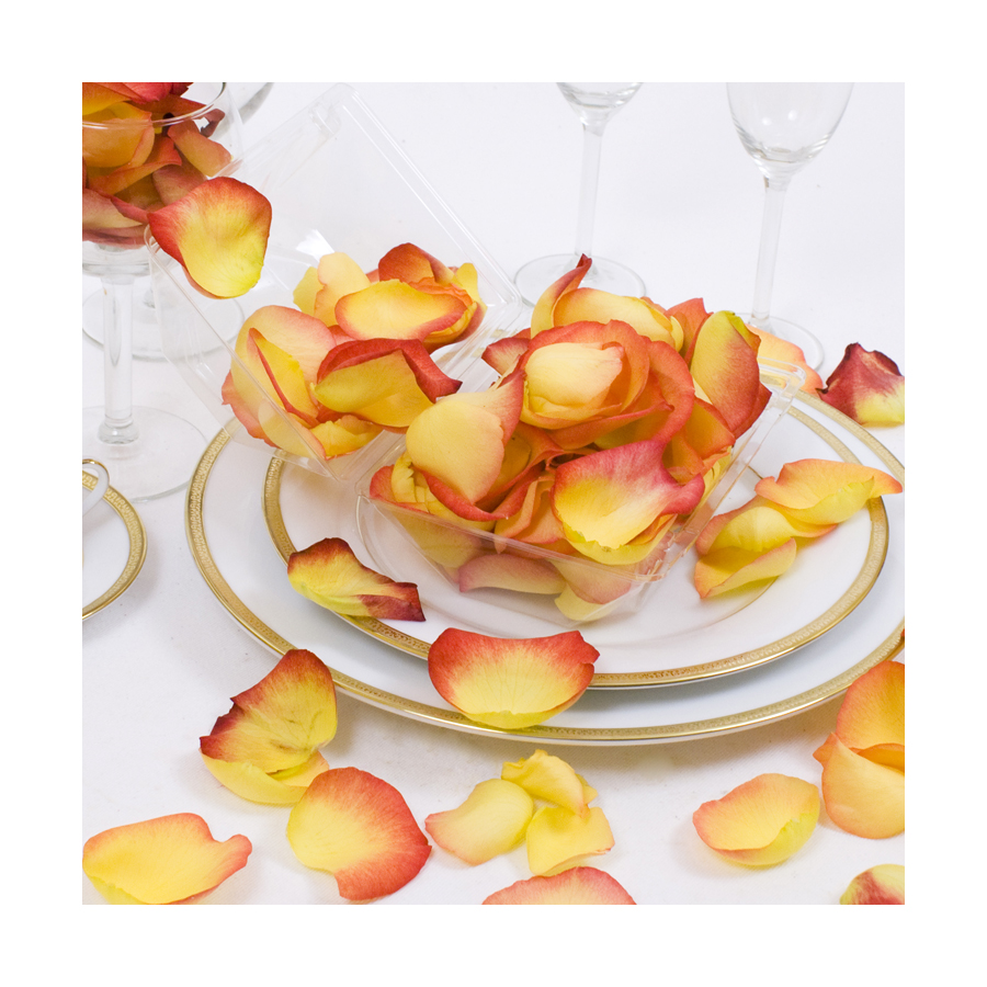 Fresh flower wedding collections will be shipped overnight for free and arrive via FedEx in a custom white box or a multiple of boxes depending on the size of your order. It will arrive 2 days prior to your event (e.g. flowers for Saturday event will arrive Thursday). Please make sure someone is available to accept the delivery so your flowers are not sitting outside in the weather. Also, please make sure that they are immediately cut and put in water adding the preservative packs in order to keep the flowers fresh and leave them there until the moment of the ceremony. Boutonnieres, Corsages and Rose petals will be packaged in smaller plastic boxes. Please put them in a refrigerator in a range of temperature between 38 and 45 degrees Fahrenheit.